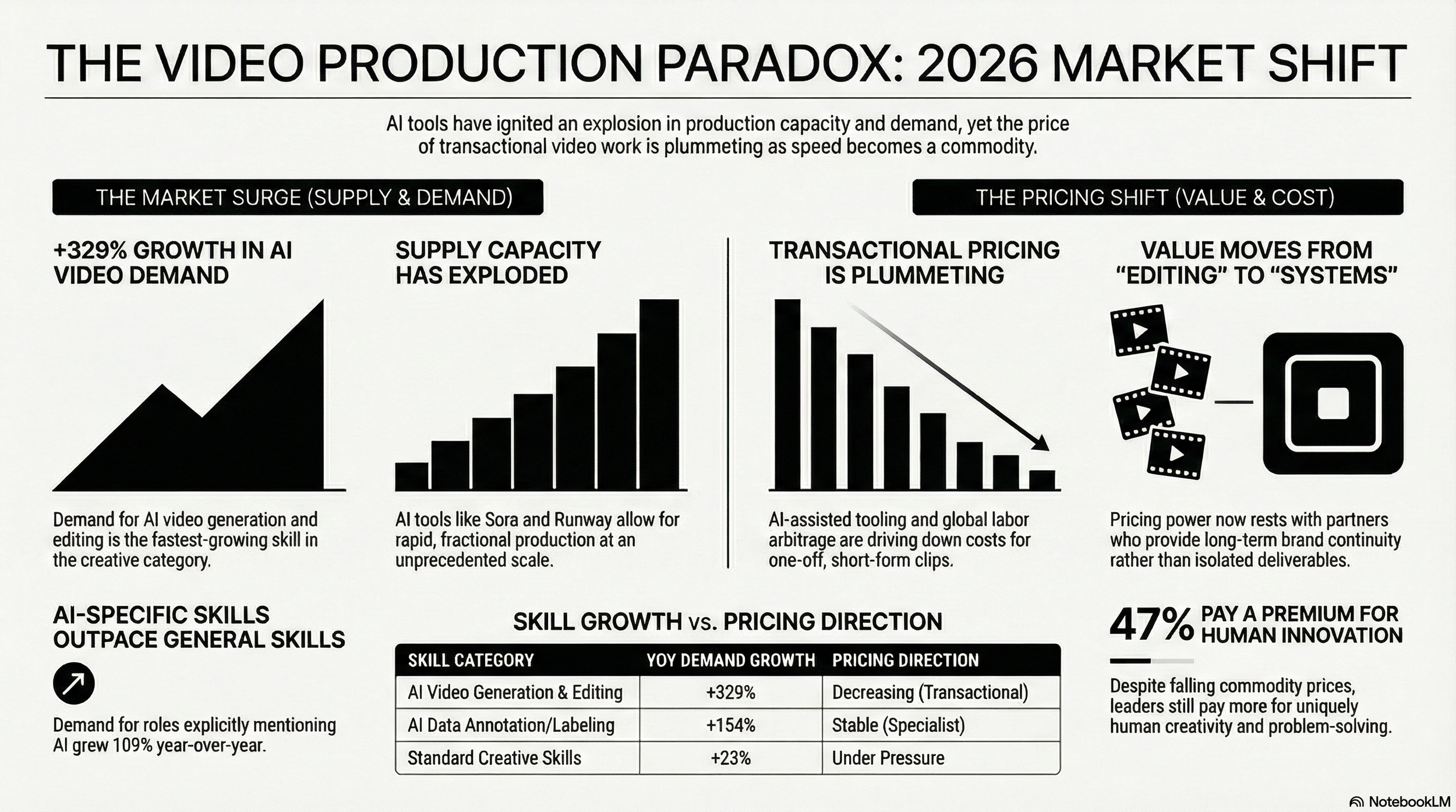 What the report doesn’t fully address is how that demand is being priced, or what kind of work is actually expanding underneath the headline numbers. And that distinction matters, especially for teams trying to build durable creative partnerships rather than chase one-off output.